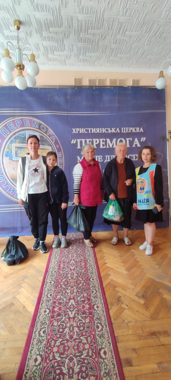 Майже з самого початку війни і по сьогоднішній день християнська церква "Перемога" дає надію та допомогу внутрішньо переміщеним особам та іншим потребуючим верствам населення Тернопільщини. Проект "Є Надія" - це підтримка для багатьох, і не лише у вигляді продуктів, одягу та засобів гігієни, а й духовна та емоційна, "обійми добра" серед розпачу і безпорадності.